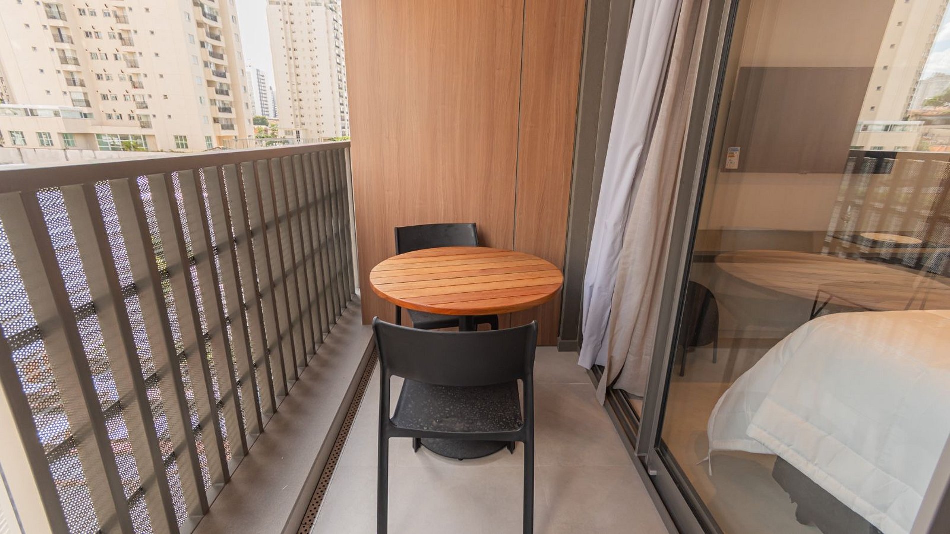 Situado no 5º andar, o apartamento oferece uma varanda com mesa e cadeira, perfeita para momentos de relaxamento. O ambiente é bem aproveitado, contando com uma aconchegante cama de casal, ideal para garantir boas noites de sono. Além disso, o apartamento possui um banheiro privativo e uma cozinha funcional, equipada para atender às suas necessidades diárias. Com uma combinação de conforto, conveniência e uma excelente oferta gastronômica e de compras nas proximidades, este apartamento é uma ótima opção para quem deseja viver próximo ao transporte público e desfrutar de uma estadia incrível.
